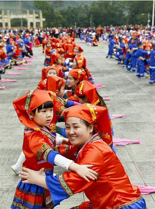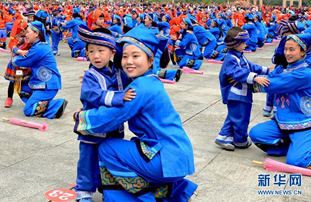 More than a thousand parents and their children attended a family activity with their children on March 27 in Donglan county, Hechi to perform traditional Zhuang dancing.
