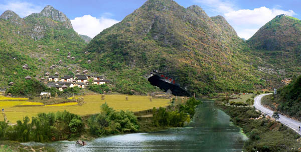 This mountain village of the Baiku Yao people consists of 21 farmhouses in the Yao style, 16 unique barns, and a deep underground valley.
