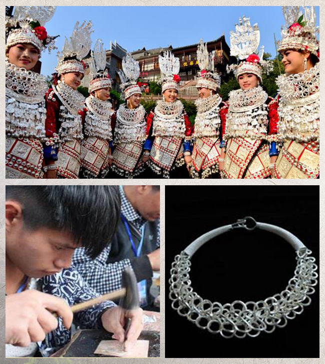 Thus, the Miao have long distinguished themselves by their splendid ornamental jewelry, with Miao girls always adorning themselves in silver from head to toe for festivals, wedding and important occasions.