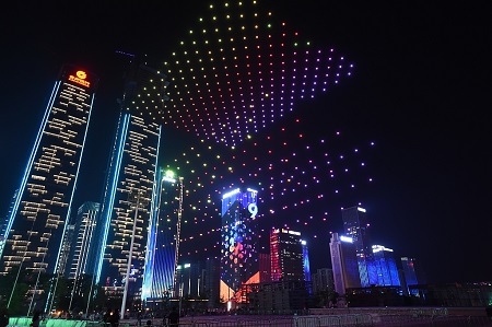 A total of 526 drones are arranged neatly on the square of Guiyang International Conference and Exhibition Center, Guizhou province on May 22, 2019.