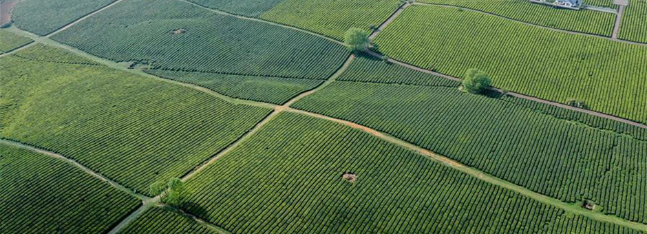Aerial photo taken on April 9, 2020 shows the scenery of a tea garden in Guiyang, Southwest China's Guizhou province.