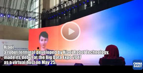 Xiao I, a robot produced by local high-tech company Xiaoi Robot Technology, is displayed at this year's big data expo.