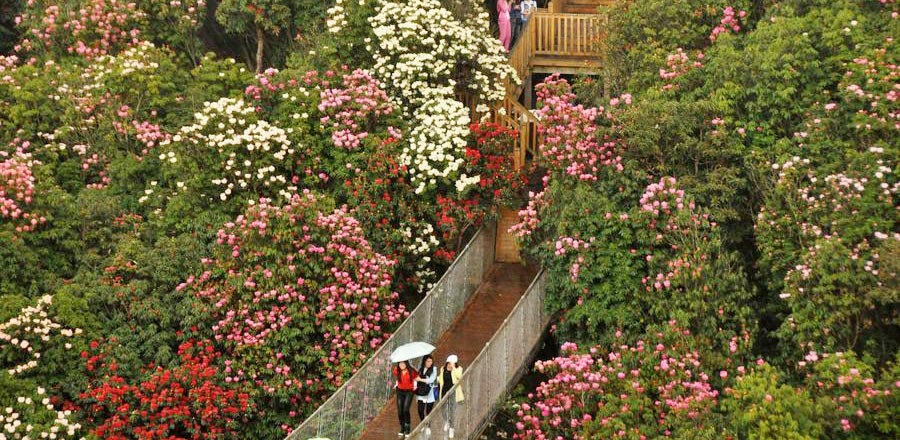 About 125-square-kilometer Azalea in the scenic area has entered full blossom season recently, drawing a lot of tourists during the qingming festival holiday.