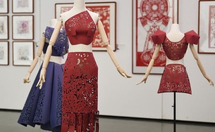 Dresses created using the traditional Chinese paper-cutting techniques are on display at the Guiyang Art Museum in the capital city of Guizhou province on June 9, 2018.