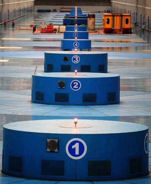 The photo taken on July 21, 2010 shows that 26 hydro generators of the Three Gorges Dam in Yichang, central China's Hubei Province, generate eletric power at the rate of their design load due to the high water level of the dam's reservoir which is being raised by the continuous rains and floods coming from the upper reaches of the Yangtze River. The generators of the Three Gorges Dam since 9:00 p.m. local time on Wednesday reached their design capacity of generating 18.2 million kilowatt of power. (Xinhua/Cheng Min)