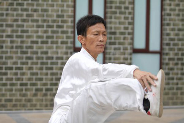 Chen Chao in white, a successor to the master teacher of Chen Style Tai Chi, practices Chen Style Tai Chi in Wuhan, capital of Central China's Hubei province Oct 7. [Photo/CFP]