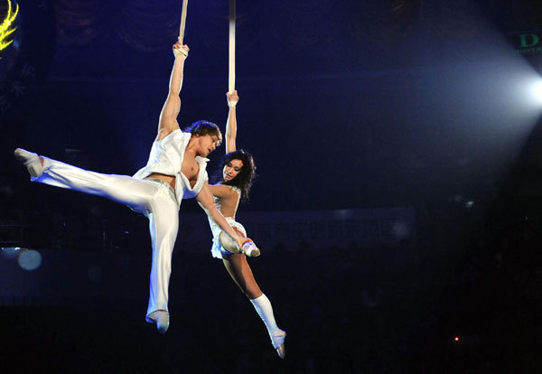 Ukrainian acrobats perform during the international art festival in Wuhan, Oct 31, 2010. [Photo/Xinhua]