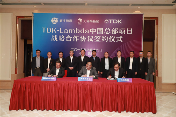 TDK-Lambda, a Japanese electronics company, signed an agreement to build its Chinese headquarters in Wuxi National Hi-tech District on April 19.
