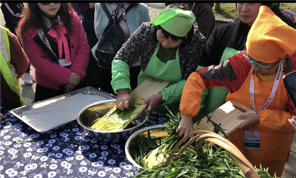 Twenty families from Wuxi gathered at Lianghong Wetland Park in Hongshan town on March 16 to compete in a tuanzi-making event.