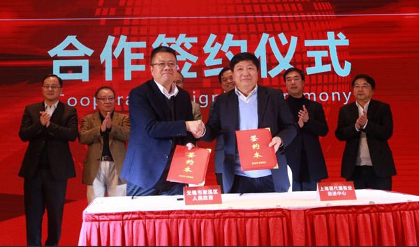 The government of Wuxi’s Liangxi district and the Shanghai Service Federation signed an agreement to cooperate on Jan 15 to promote economic development in Liangxi.