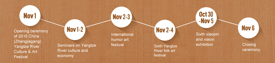 Since 2004, with the support of the Ministry of Culture, China Federation of Literary & Art Circles and other concerned organizations, Zhangjiagang Municipal Government has successfully held Yangtze Culture & Art Festival five times together with drama associations and folk culture societies from 12 provinces along the Yangtze River, including Qinghai, Tibet, Yunnan, Guizhou, Sichuan, Chongqin, Hunan, Hubei, Jiangxi, Anhui, Jiangsu and Shanghai.