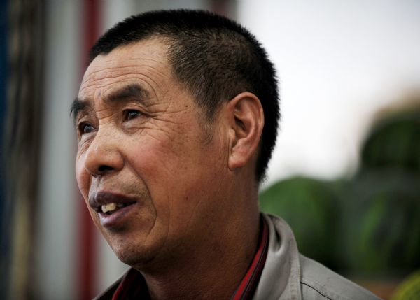 Photo taken on May 18, 2010 shows Zheng Anhong, a fruit vender who is 58 years old, in Anshan City of northeast China's Liaoning Province. (Xinhua/Li Gang)