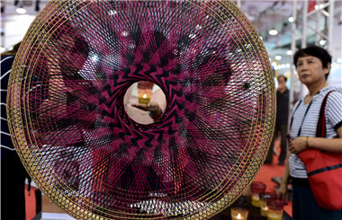 People view handicrafts at 4th China Intangible Cultural Heritage Expo in Jinan