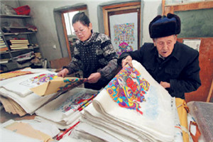JINAN - A cherubic child holding a big fish, a giant tree bearing golden coins as fruit, or delicate woodblock paintings are all often hung at homes during the Chinese Lunar New Year. For many Chinese, bright-colored woodblock paintings, which are hung at almost every door, windows and walls for festival decorations, are quite time-limited. As soon as the parties come to an end, these print works are at once thrown away.