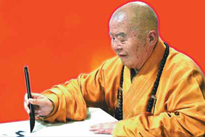 Nearly blind, Buddhist master Hsing Yun continues to create calligraphy that inspires, reports Wang Qian.