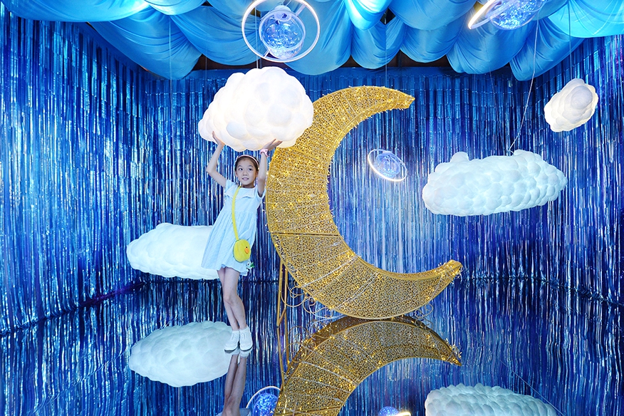 Visitors have fun among installations at an art exhibition in Qingdao, East China's Shandong province.