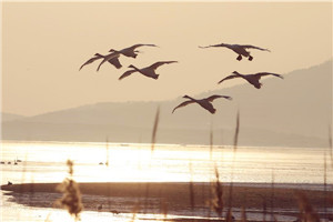 Swans fly over the Swan Lake in Rongcheng City, East China's Shandong province, Jan 13, 2017.