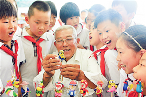 Fan Zhengyong, a fifth-generation inheritor of Mount Tai dough figurine-making, caused a sensation among the pupils at Yanglou Primary School in Tai'an, Shandong province during his visit to the school last week.