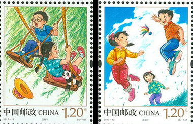 China Post released six special stamps that feature children's games on Wednesday. The Tianjin Stamp Company also issued commemorative envelopes on a similar theme
