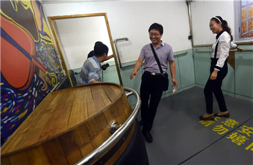 A group of tourists visit a beer museum in Qingdao, east China's Shandong Province, June 14, 2016. Tourist volume of the city's beer industry tourism projects reached 4.5 million in 2015.