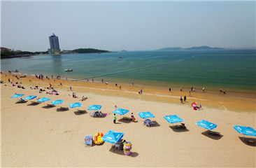 To meet the needs of tourists, the No 1 bathing beach of Qingdao opened to the public on Wednesday, one month earlier than previous years.