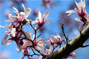 A woman posed for pictures under magnolia flowers at Baotuquan Park in Jinan, Shandong province, March 14.