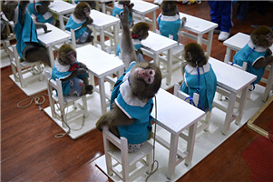 A dozen monkeys are being trained at a school in Shandong for the Year of the Monkey.