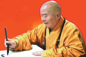 Nearly blind, Buddhist master Hsing Yun continues to create calligraphy that inspires, reports Wang Qian.