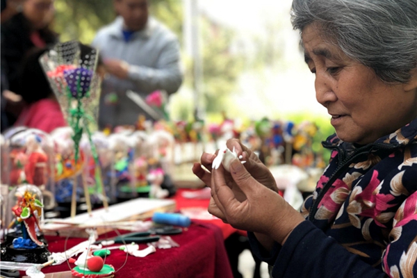 With her rough yet deft hands, Gao Guiying kneaded and pressed a lump of dough to shape 10 petals of a red rose in less than 10 minutes at her workshop in Jinan, capital city of East China's Shandong province, on April 5. On a desk in front of her, there were different colored doughs and dozens of dough figurines made by Gao and her six apprentices.