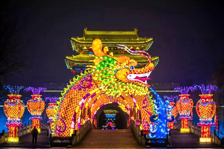 Enjoy lantern show in Taierzhuang ancient town