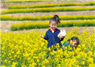 2019-04-23Yuejiaquan village attracts visitors with its blooming rape flowers.