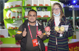 2020-10-28A group of expats visit the exhibition for the ongoing first China Shandong Intl Apple Festival.