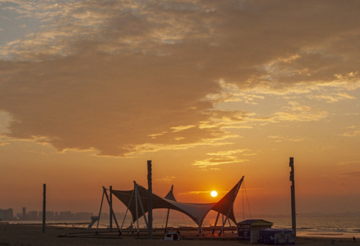 2020-07-17The Golden Beach scenic area in Yantai, Shandong province looks radiant at sunset after a bout of rain.