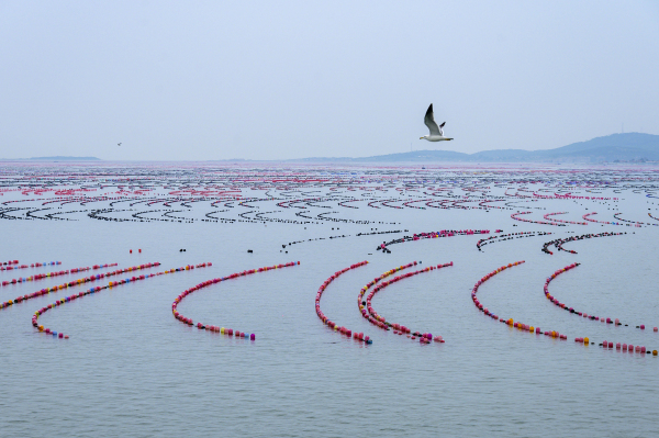 2021-07-30Colorful aquaculture nets create picturesque views in the sea near Changdao Island.