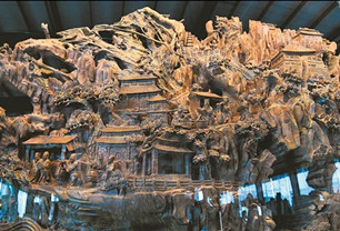 The 18-meter-long wood carving of Riverside Scene at Qingming Festival, one of the most renowned ancient Chinese works of art, was on display in Taiyuan on Aug 10.