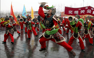 There were six Shehuo troupes altogether, consisting entirely of farmers from the Yanhu district of Yuncheng who came to the city’s Shun Imperial Tomb Square to provide gong and drum and yangko (rural folk dance) performances, on that day to help celebrate Spring Festival.