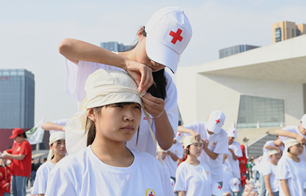 Shanxi branch of China Red Cross Society, Taiyuan Health School and Shanxi Red Cross Blue Sky Rescue carried out an emergency escape and rescue drill in Taiyuan on Sept 9.