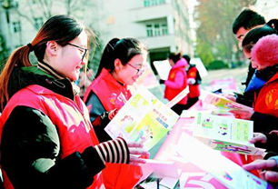 Students of Changzhi Medical College distributed leaflets about AIDS prevention on World AIDS Day in Changzhi city, Shanxi province, Dec 1.