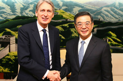 Zhou Qiang meets with British Foreign Secretary Philip Hammond