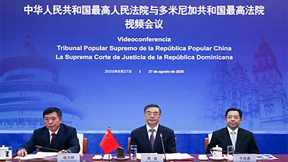 Zhou Qiang, president of China's Supreme People's Court, held a videoconference with Mariano Germán Mejía, head of the Supreme Court of the Dominican Republic on Aug 27.