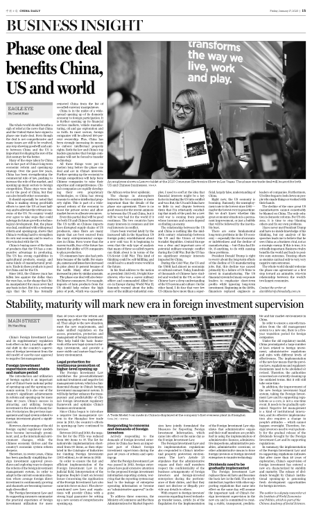 The whole world should breathe a sigh of relief at the news that China and the United States have signed a phase one trade deal. Even though the deal is not comprehensive and many issues are still to be resolved, any step showing goodwill and amity between China and the US is important for shaping t
