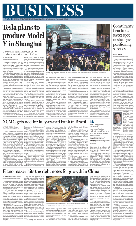 US electric carmaker Tesla Inc said on Tuesday that Model Y would be the second model it would make in China after the Model 3 sedan, a move that analysts say would help it gain a bigger share in the world's largest car market.