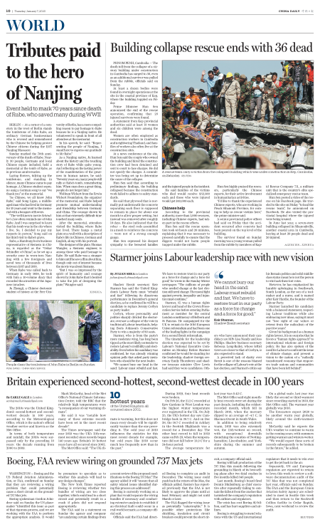 BERLIN-At a corner of a cemetery in the west of Berlin stands the tombstone of John Rabe, an ordinary German businessman who is revered and remembered by the Chinese for helping protect Chinese citizens during the 1937 Nanjing Massacre.