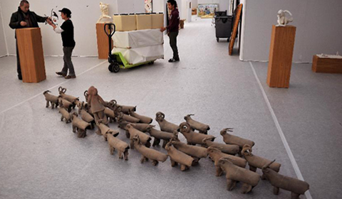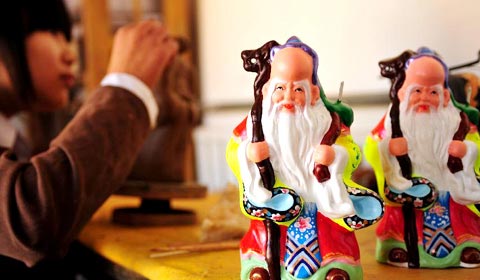 Apprentices of the clay sculptor Song Changfeng makes sculptures at Song's studio in Botou, North China's Hebei province, Oct 24, 2013.