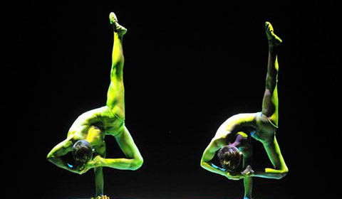 Actors perform acrobatics during the National Acrobatics Competition in Chongqing, Southwest China, October 30, 2013. The competition opened on October 28, and will run through November 2.