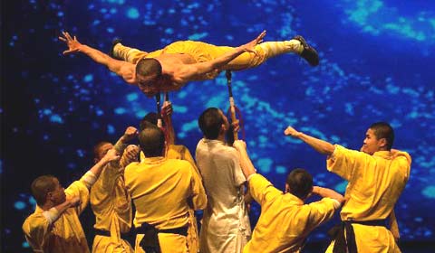Shaolin monks from China's world-renowned Shaolin Temple perform at the Suzanne Dellal Center in Tel Aviv, Israel, Feb 19, 2014 as part of Chinese New Year celebrations.