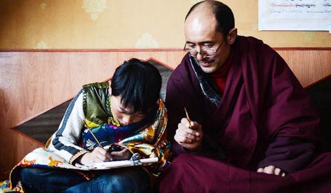 Aang Jiancuo, 46, is the inheritor of the De'ang Sazhi Tibetan Calligraphy, which has been listed as the national intangible culture heritage of China.