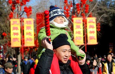 People visit the temple fair in Ditan Park in Beijing, capital of China, Jan 30, 2014. The 29th Ditan Park temple fair open to the public on Thursday.