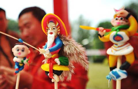 Intangible cultural heritages like shadow play and paper cutting attracted lots of people to the temple fair on Saturday, the second day of the seven-day break for Spring Festival.