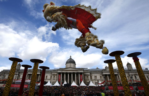 Fantastic lion and dragon dance, and fascinating singing and Chinese traditional instruments were performed on Sunday, not in China, but the heart of London City, attracting tens of thousands of people.